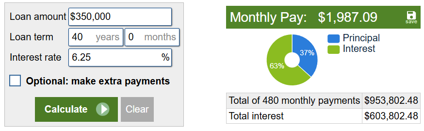 But a lower monthly payment does not mean a cheaper long-term cost. The total interest paid on a 50-year mortgage is dramatically higher. A $350,000 home can easily become an extra $500,000+ obligation over the full life of the loan.